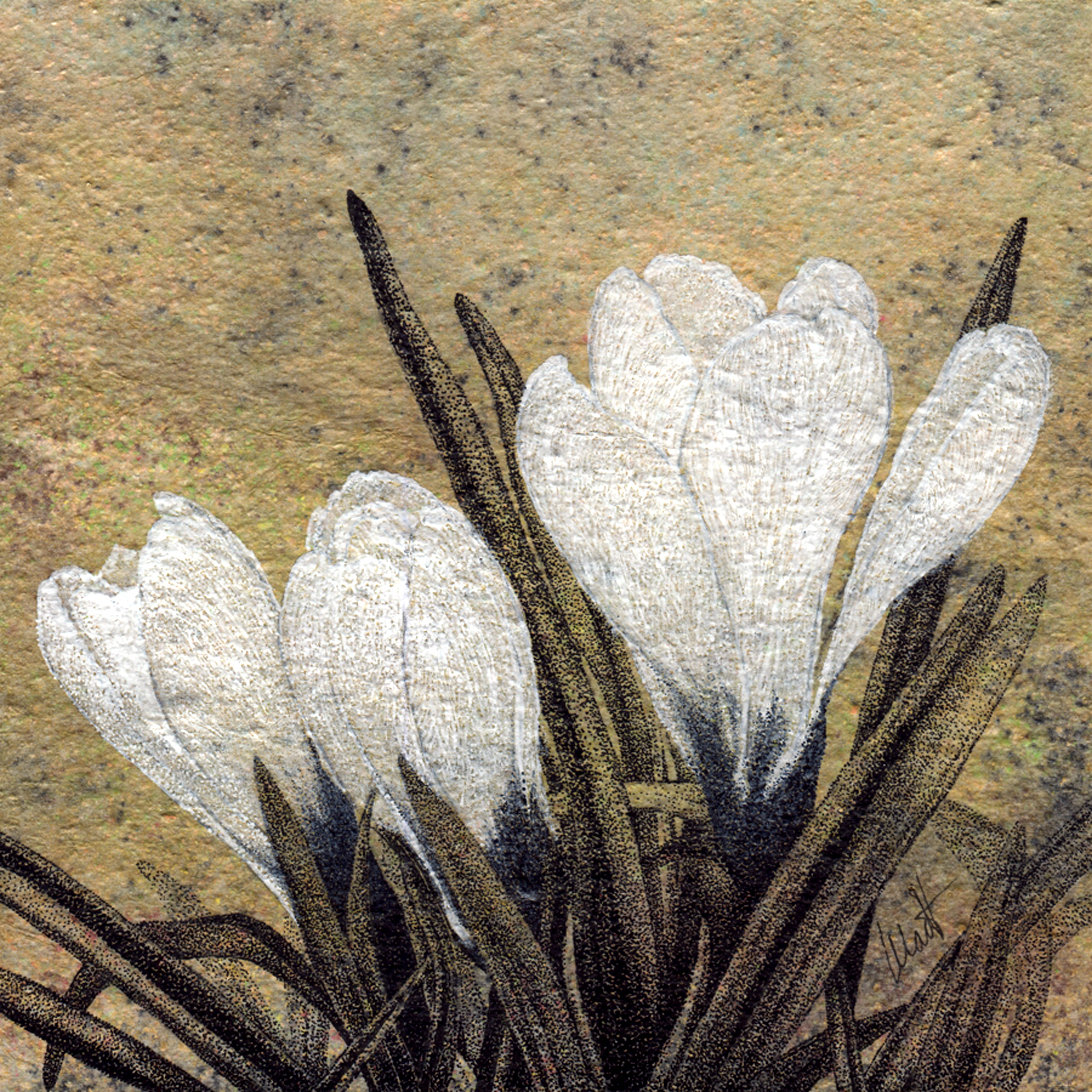 Three 5” x 5” drawings make the “Delicate Beginnings” little series. It would be four, but the forth one became a casualty of forgetting to cover the ink drawing with final fixative before attempting to mount it on top of the tissue paper with pastels and powdered bone. It will require heavy touch-up and maybe adding some color to the foal. I am not sure about color yet, but it’s a possibility. Maybe all four would benefit from some color.