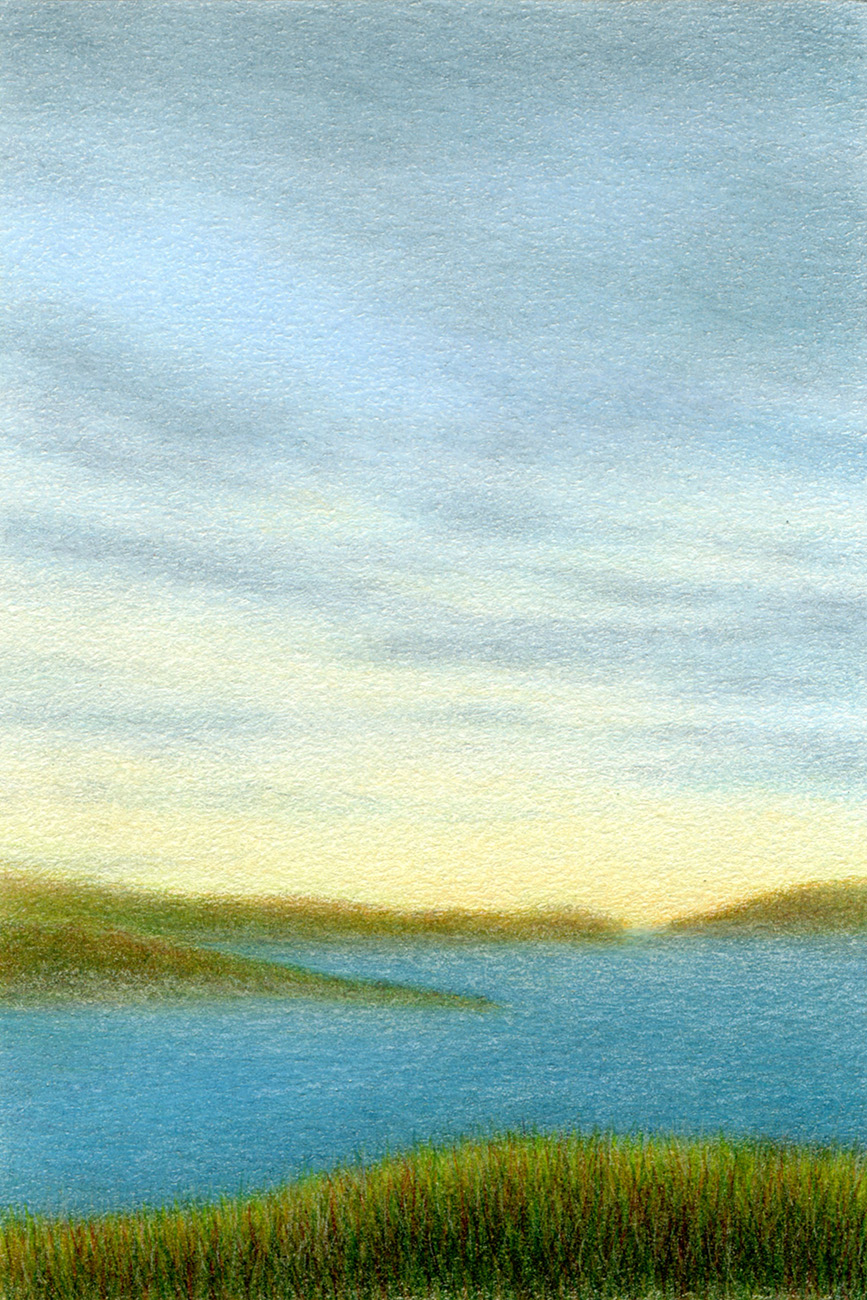Evening by the River – colored pencil on paper, 4″ x 6″